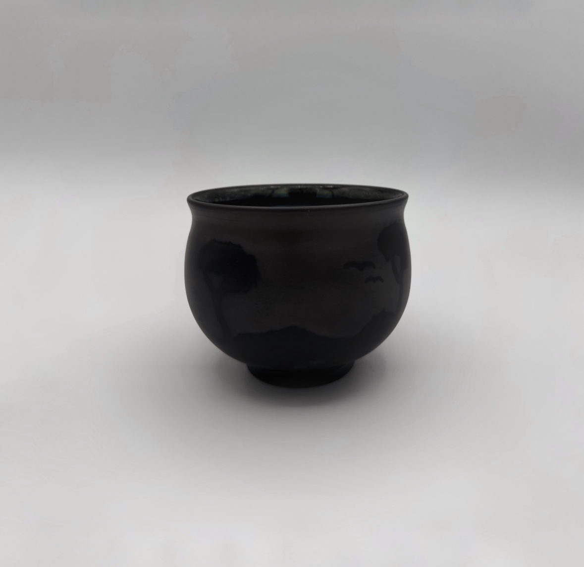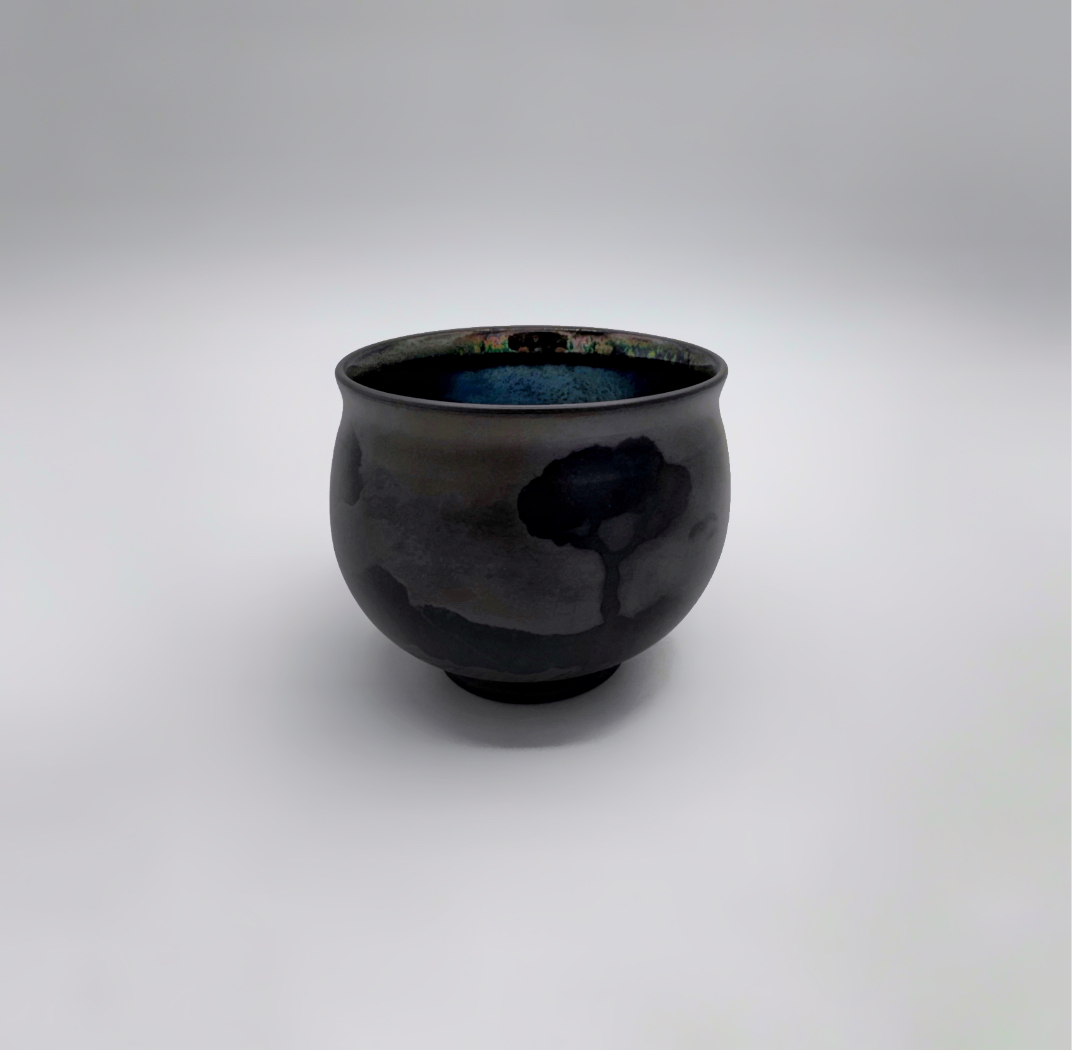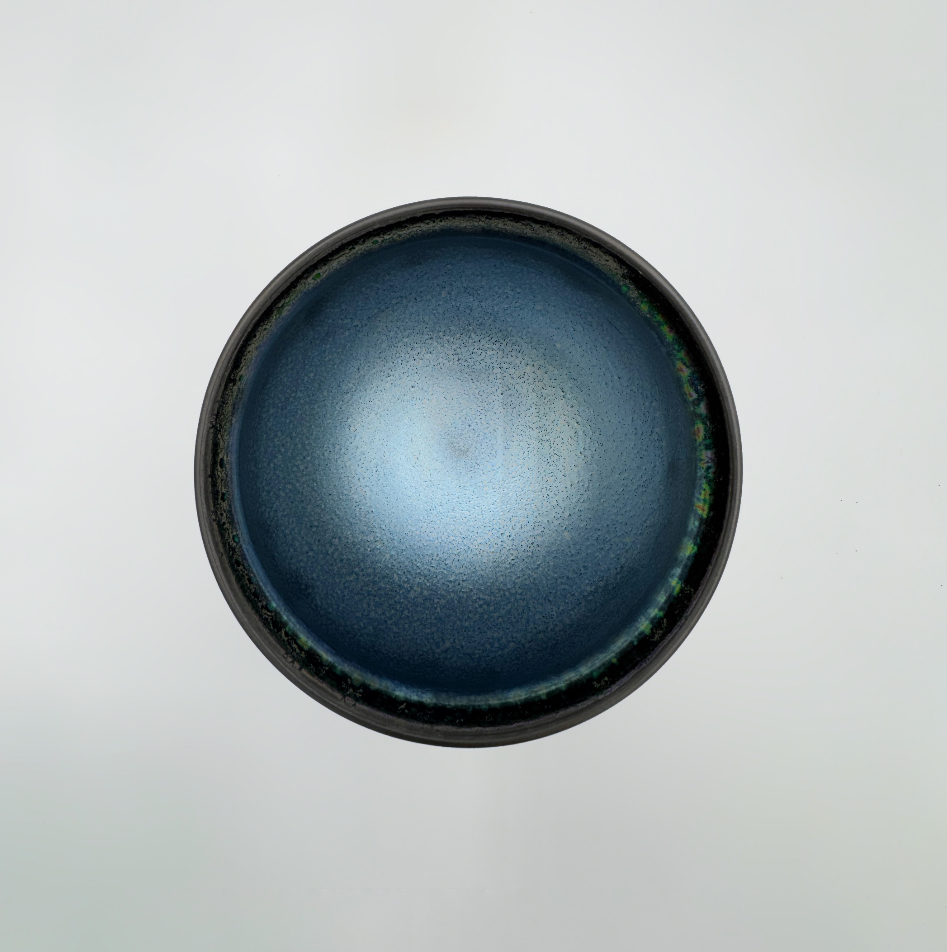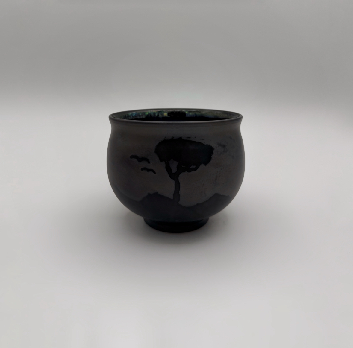 Barro rojo, torneado,bruñido,esmaltado en el interior con reflejo metálico y decorado con reservas. Cocido en reducción.